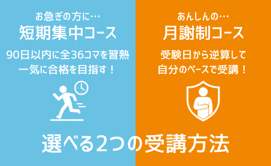 | 受講スタイル | ・教室での動画視聴授業(個別対応) ・試験模擬問題の対策 |
